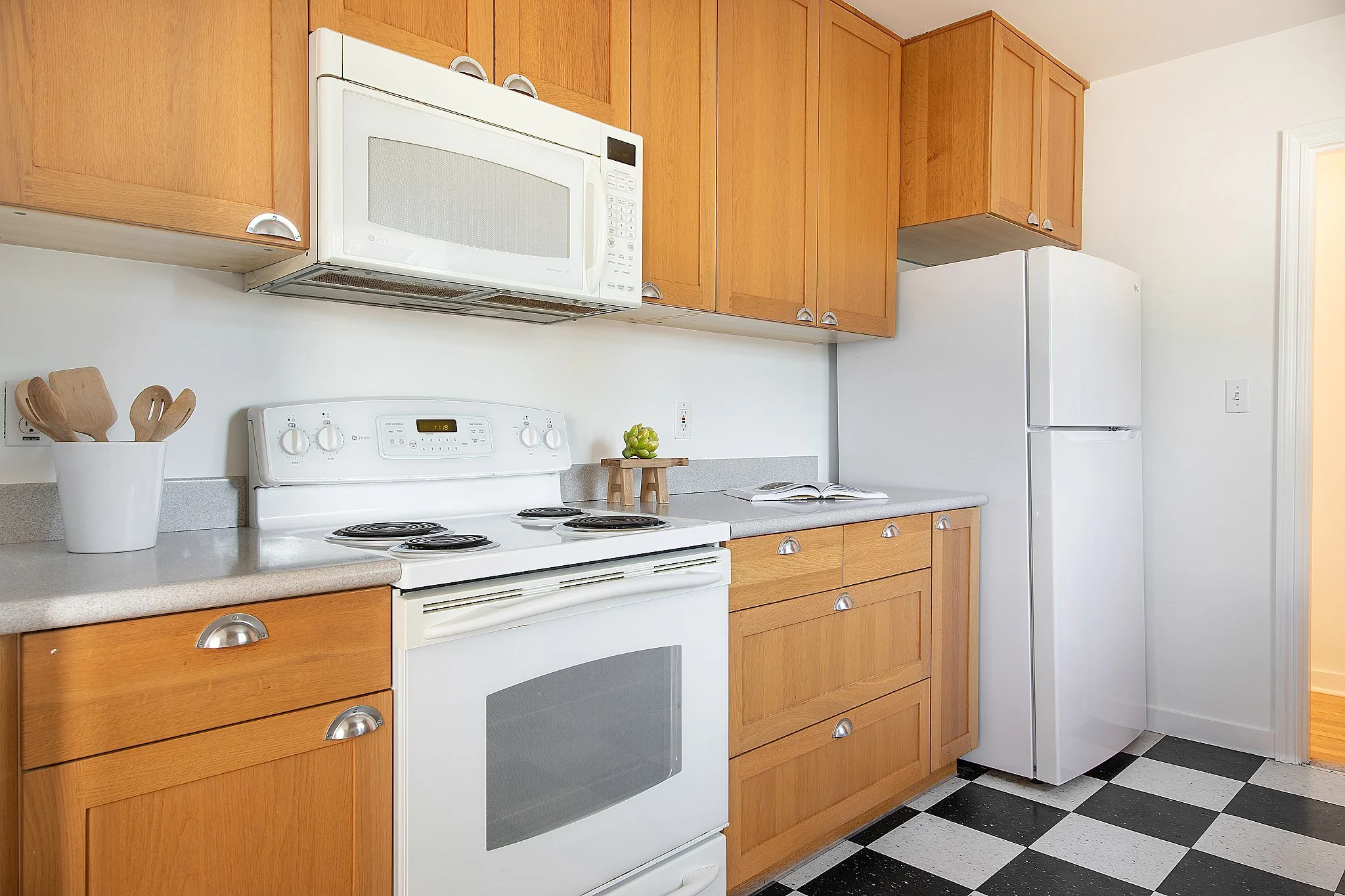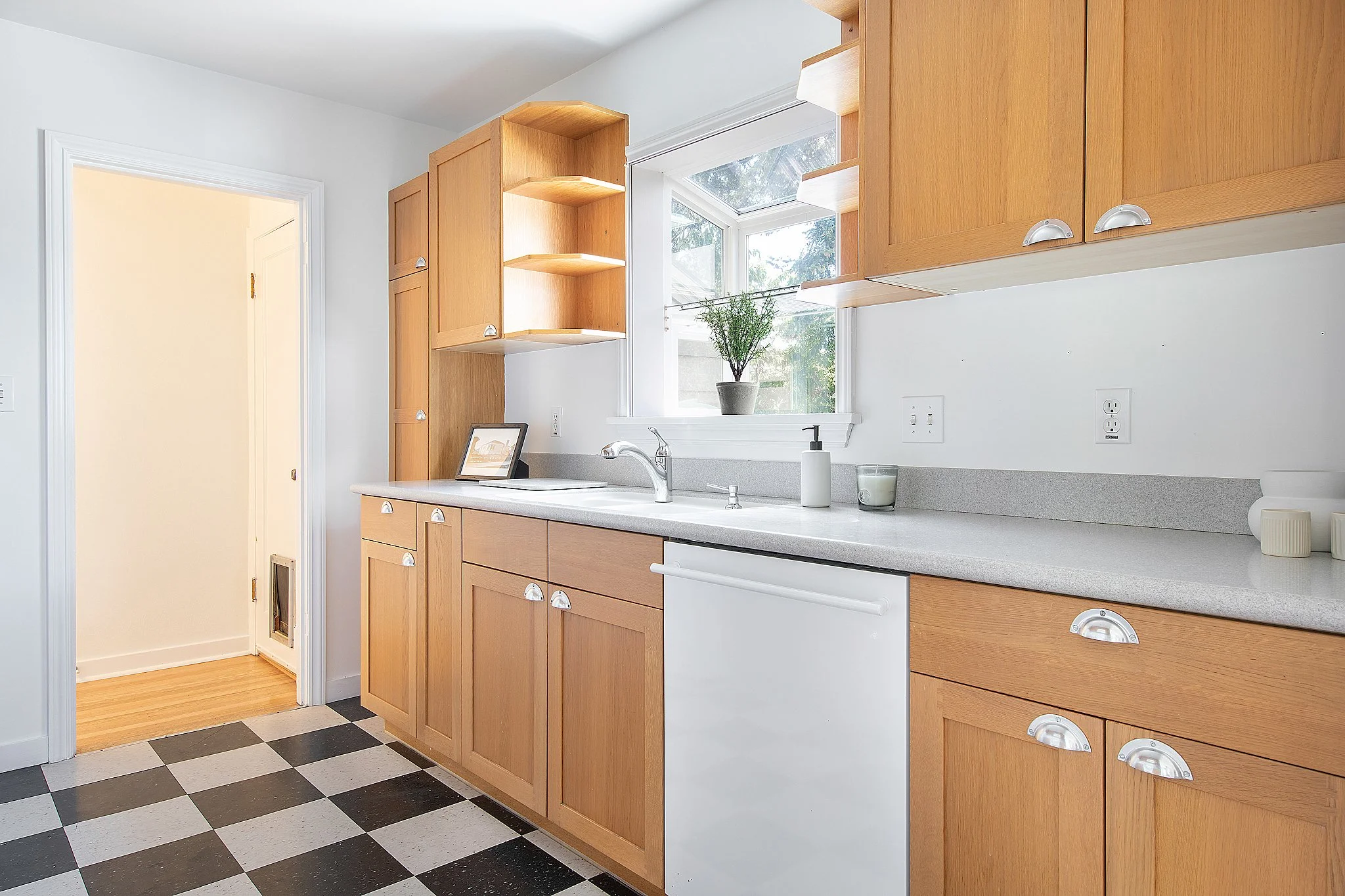 You will also find two bedrooms and an updated bathroom with period tile. The kitchen is large with plenty of space for storage and cooking.